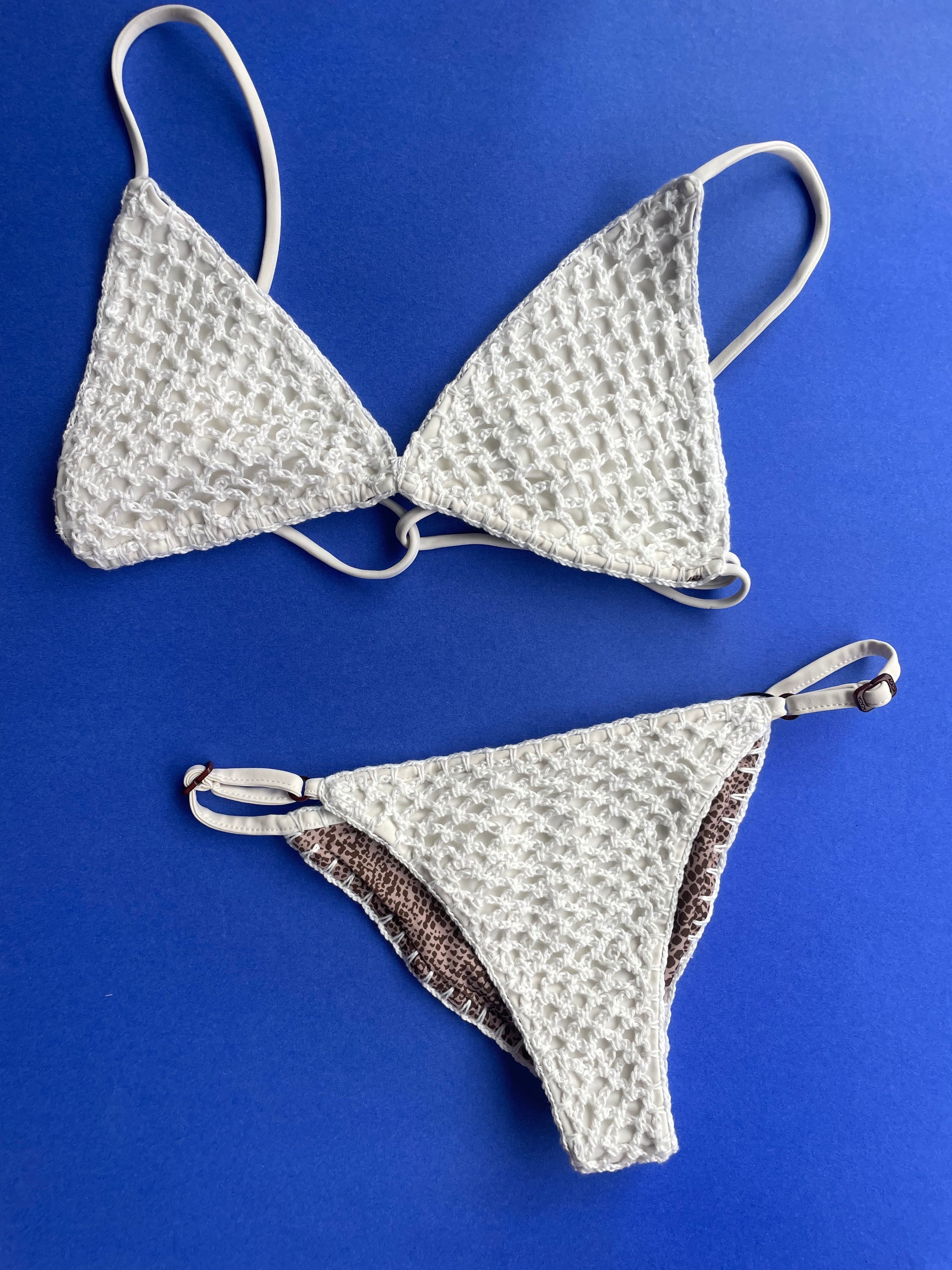 Fresh white crochet bikini bottom from Acacia. Cheeky with adjustable straps for the perfect fit.