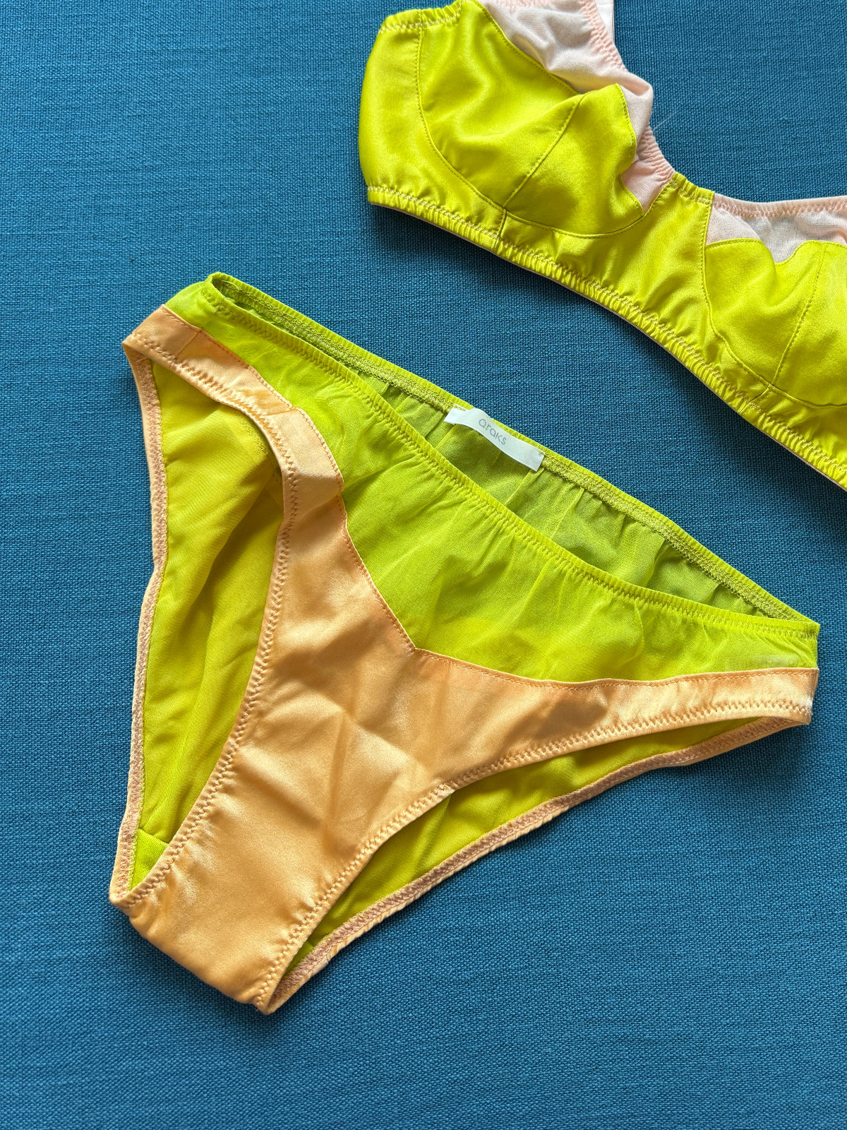 Best-selling silk charmeuse panty with silk chiffon upper yoke. Full seat coverage.