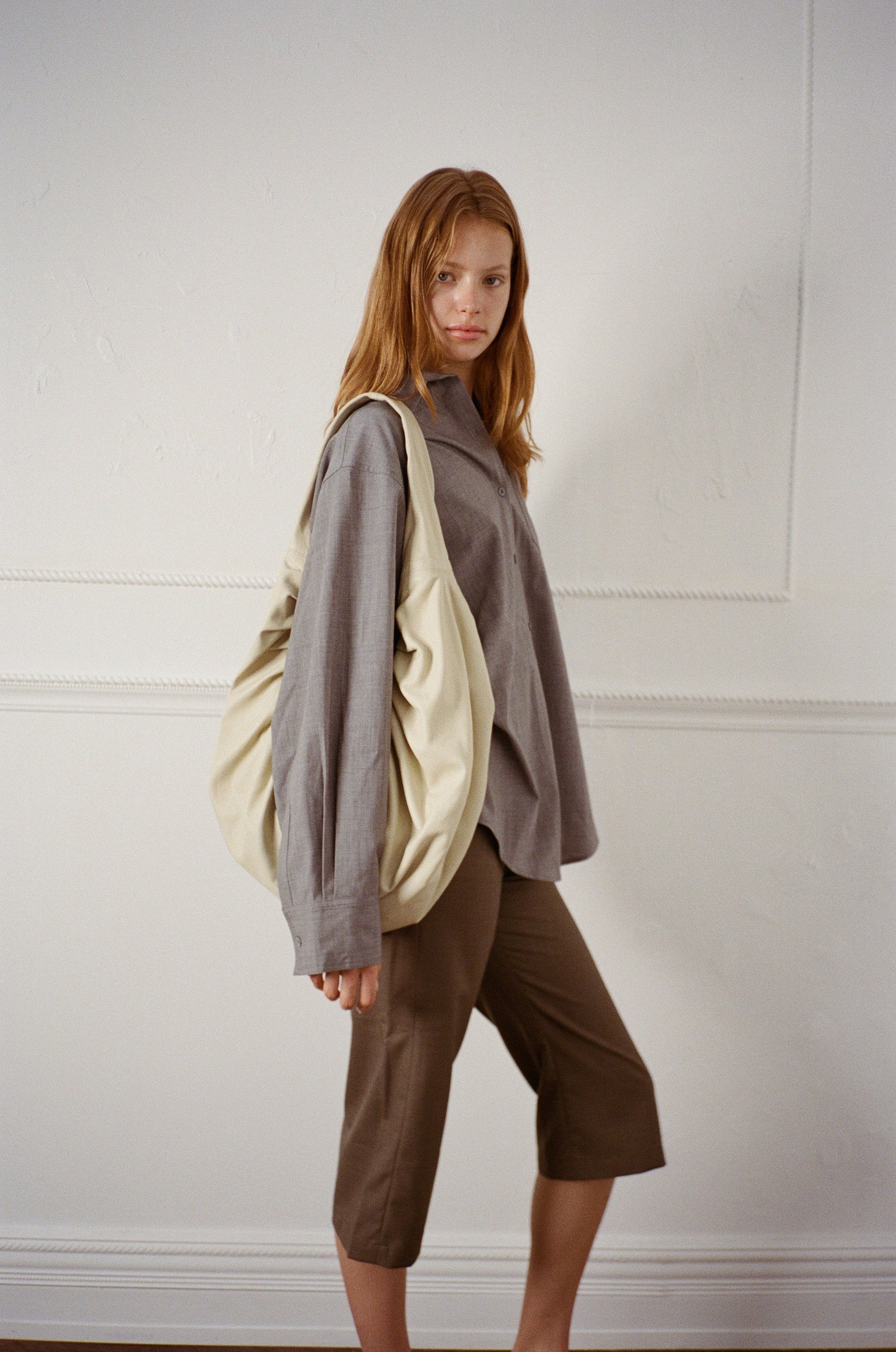 The Miu Bag is a large hobo bag made from genuine leather. Features a comfortable wide strap, center ruching, and zip closure.  Interior space suitable to hold a standard 14" laptop.