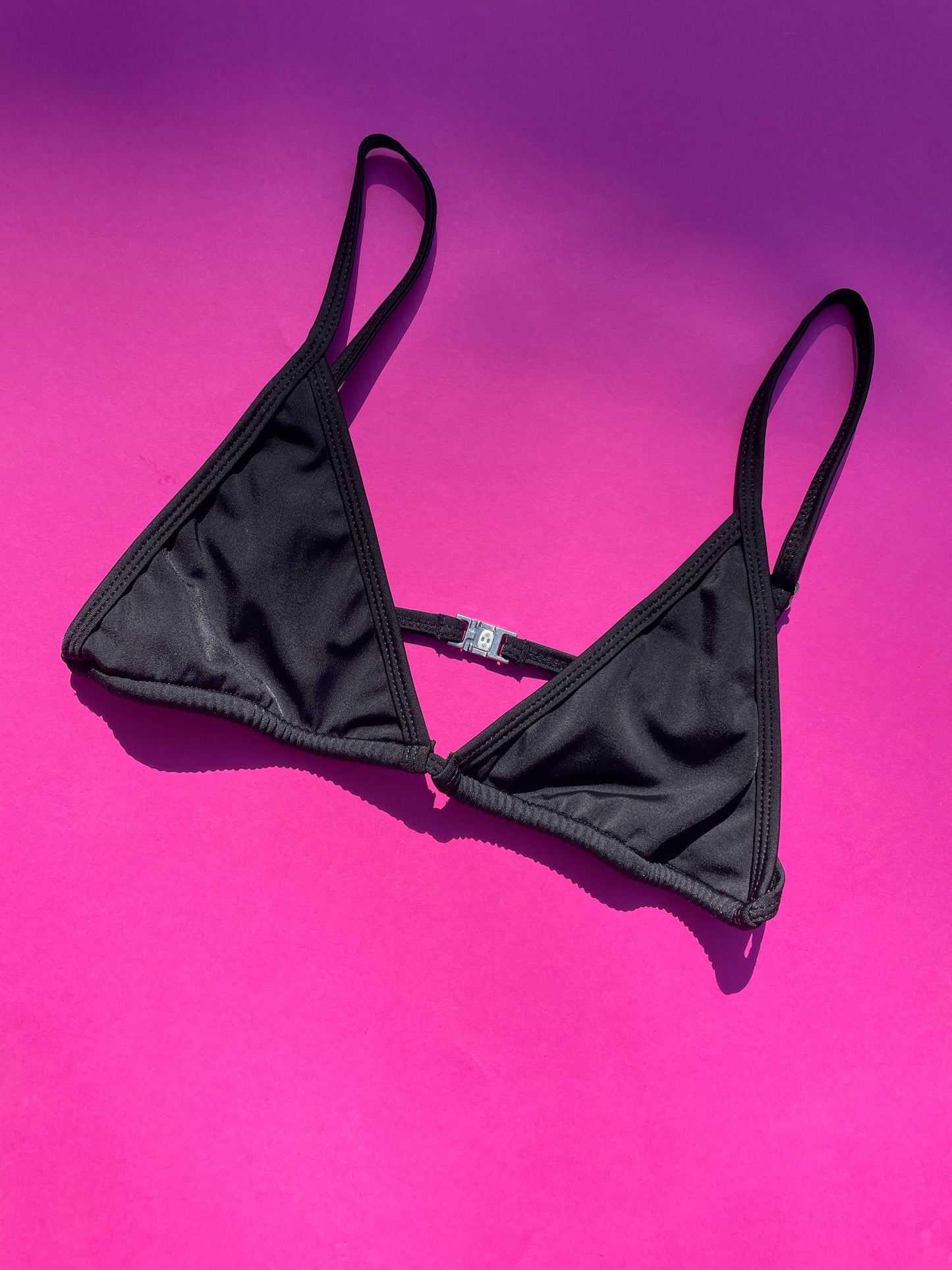 Simple, timeless triangle bikini top with minimal coverage and adjustable shoulder straps. Straps slide on the back. A forever staple for a chic holiday look.