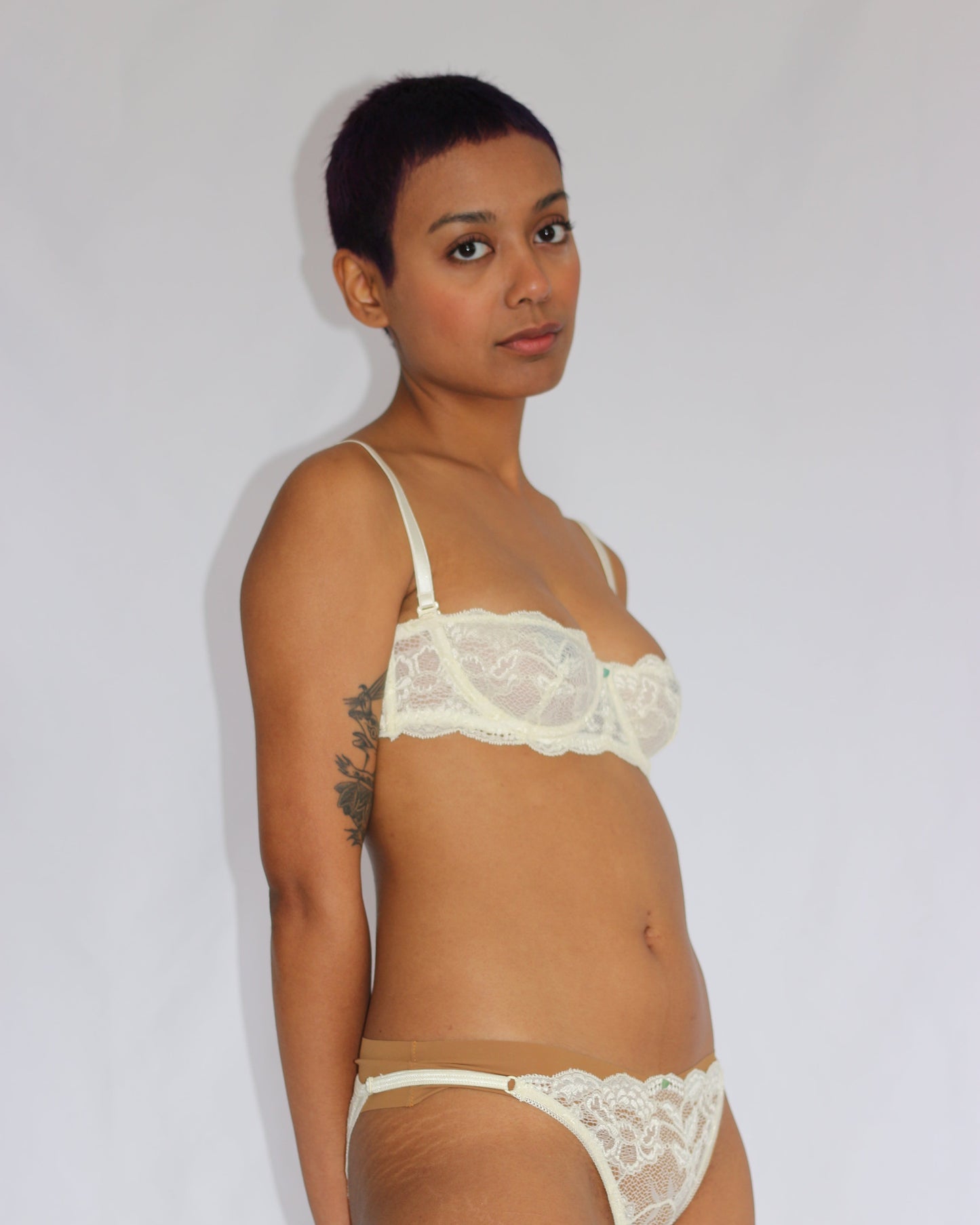 A variation on their best-selling demi bra, this underwire bra is part of their naughty Abierto collection. The lace just covers and grazes the nipple.  Features adjustable straps (can also be worn criss cross at the back) for the perfect fit.