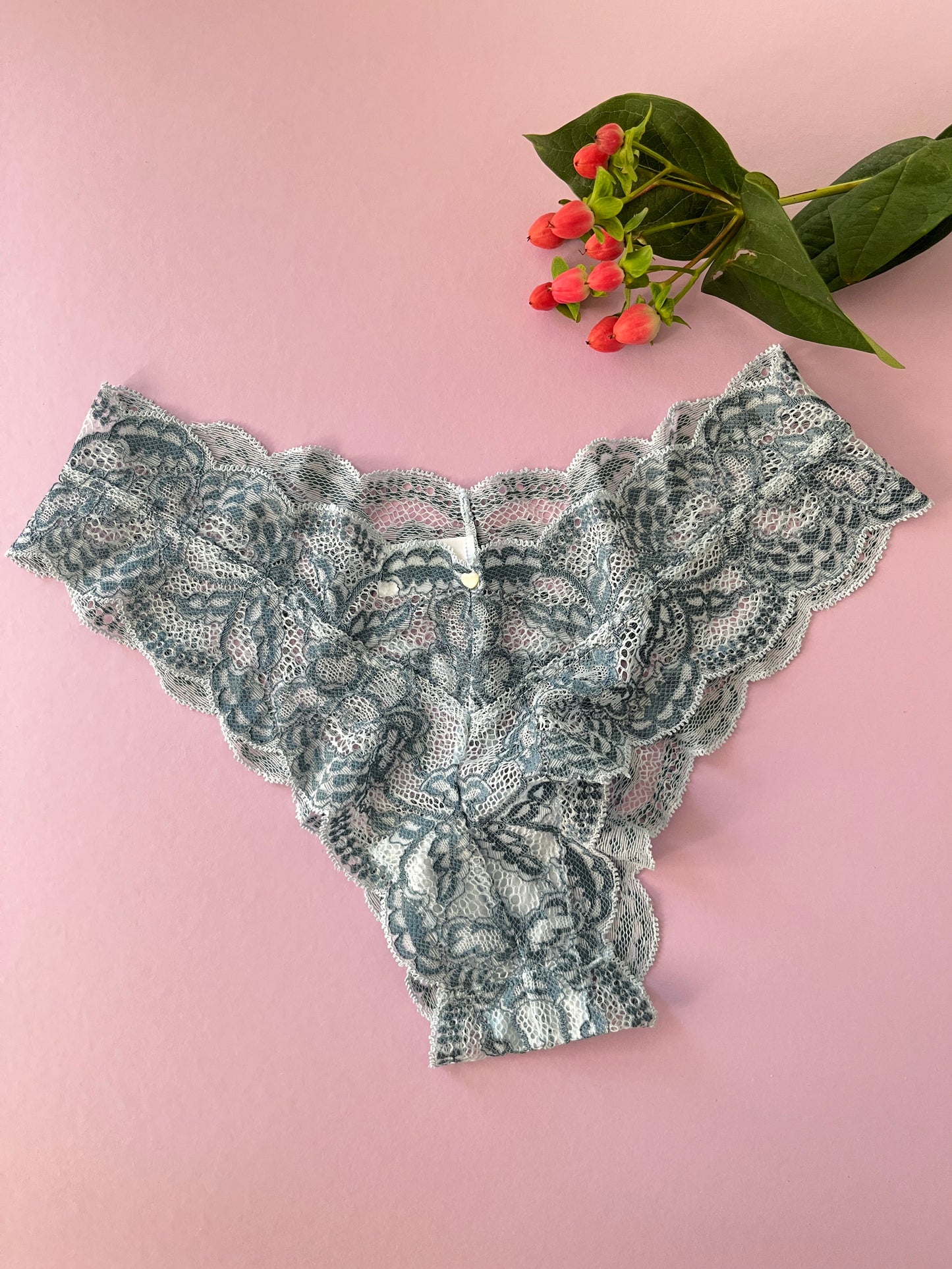 Finally, a lace panty that satisfies all parties. The cut in the back offers a hint of cheek yet sits in the front like a boyshort. The back coverage is in-between a boyshort and a bikini brief.