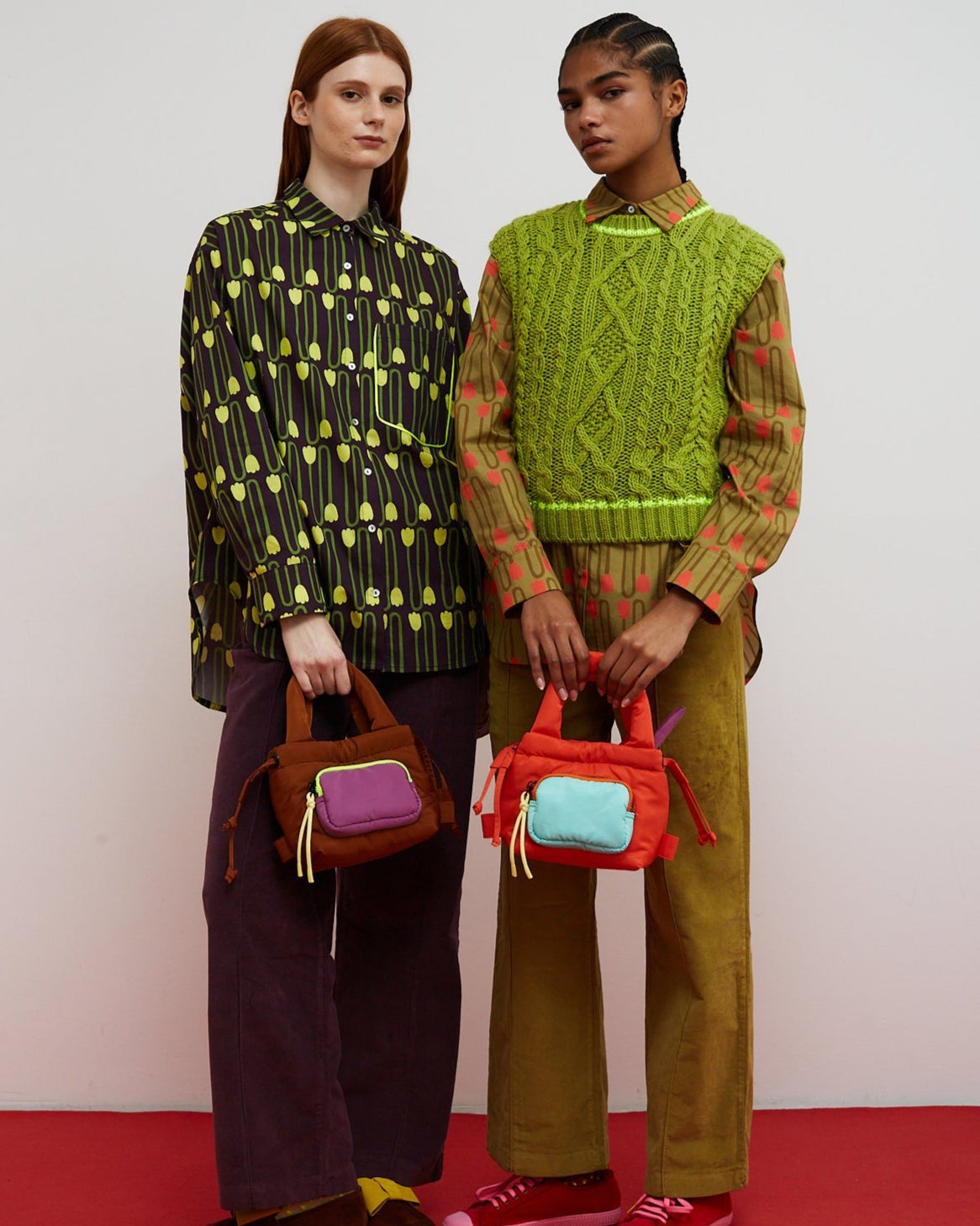 Now here's an easy way to add a little pop to your outfit - the flip bag is a small padded bag that can be carried by hand or slung across the shoulder thanks to the contrasting long handle. A front pocket to store tiny essentials in and zippers to keep everything secure.