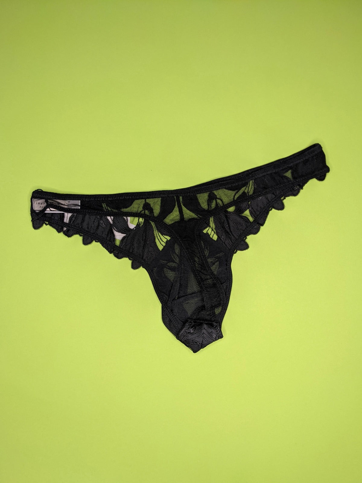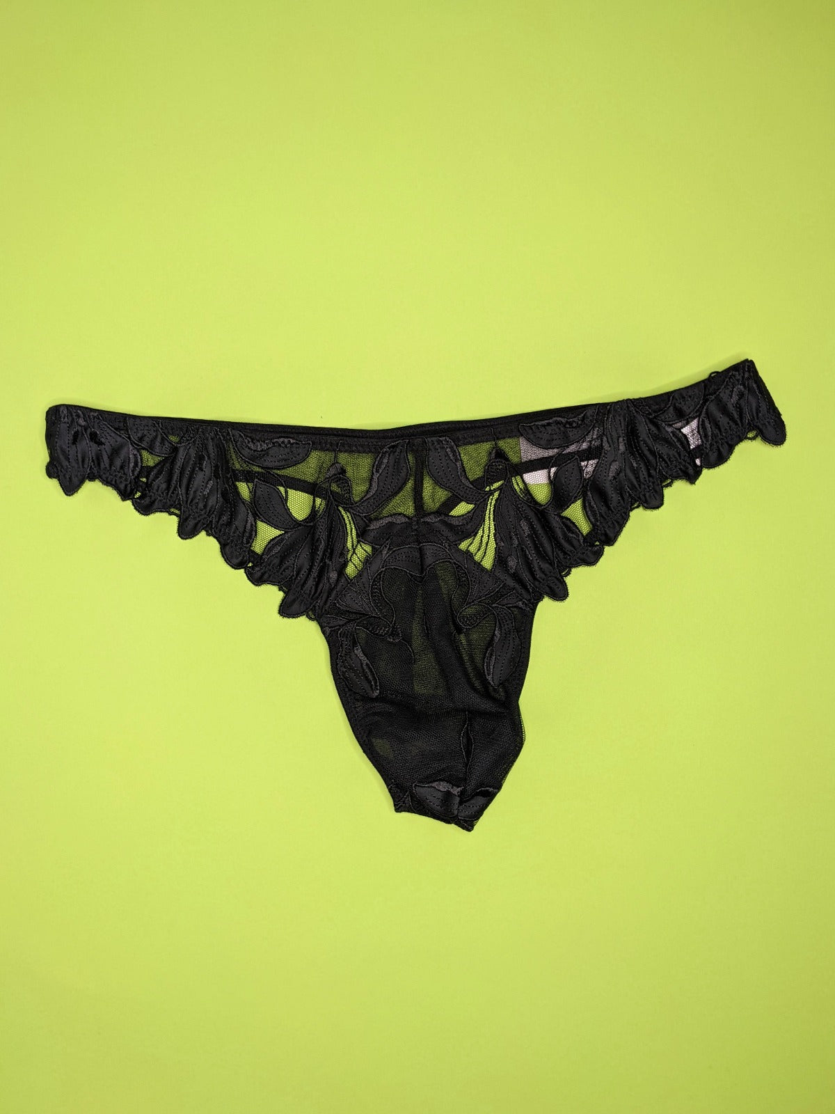 Fleur du Mal: More Space Lily Lace Thong - Black