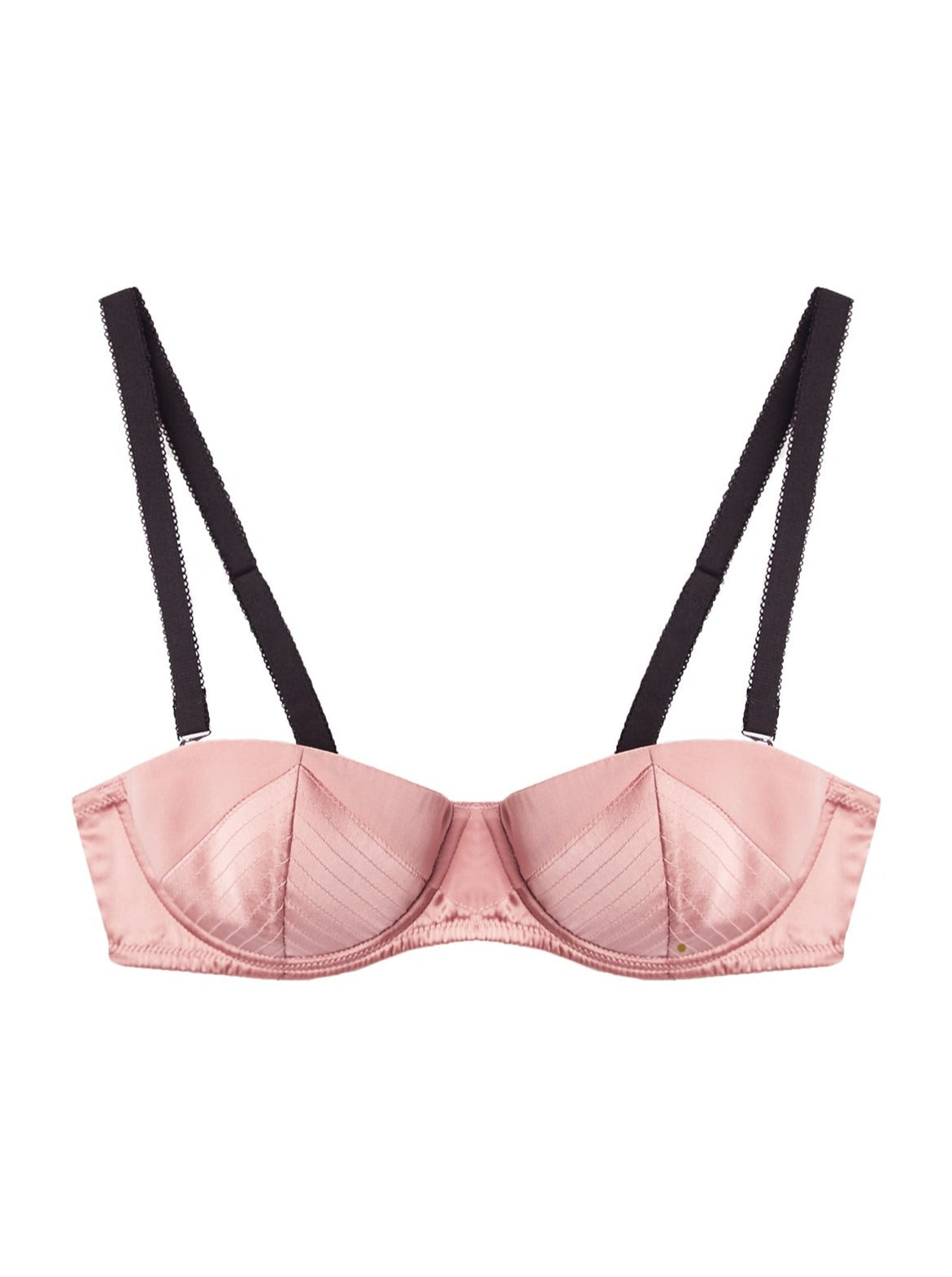 The one molded balconette bra you need. Luxurious silk cups with top stitch detailing and black accent shoulder straps. A sexy tuxedo if you will. Definitely a weapon of seduction.