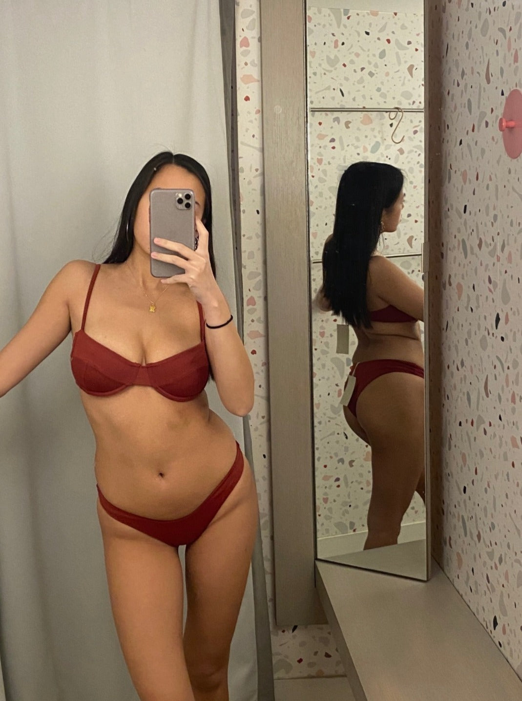 High-leg bikini bottoms in Bordeaux with cheeky coverage. Mid-rise. Elasticized waistband. Fully lined.