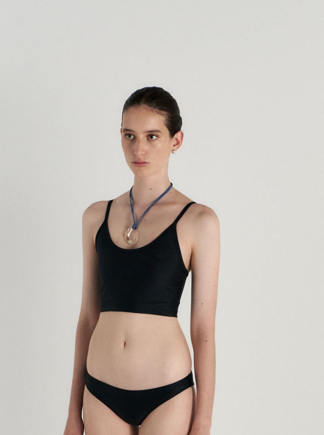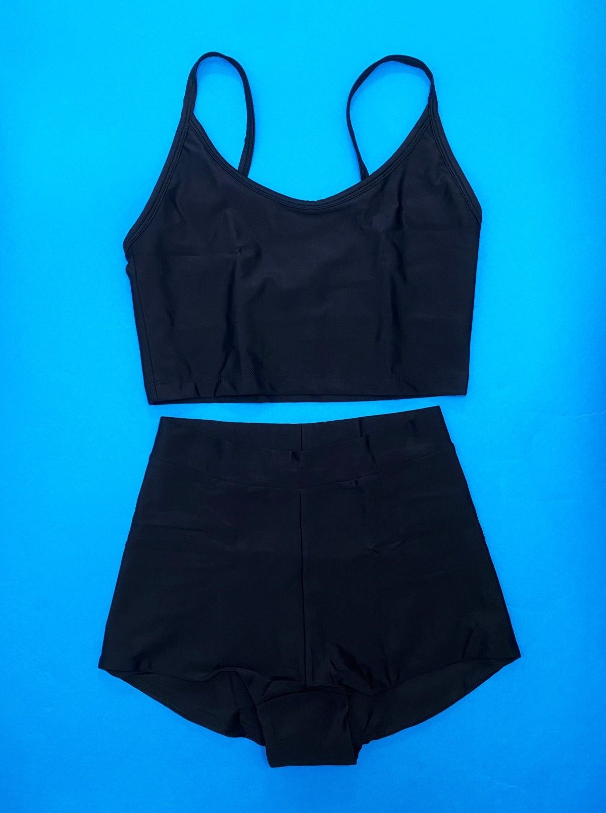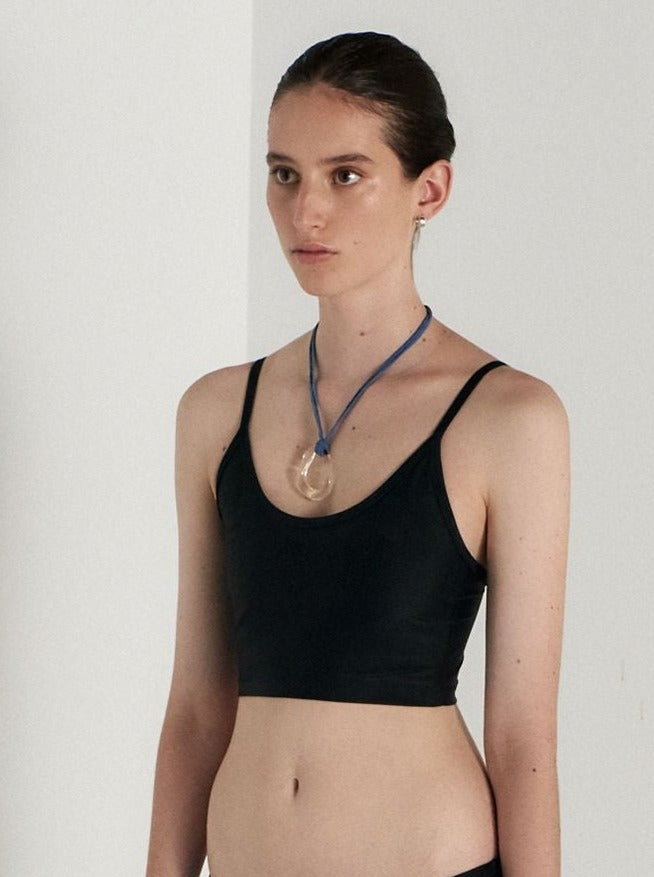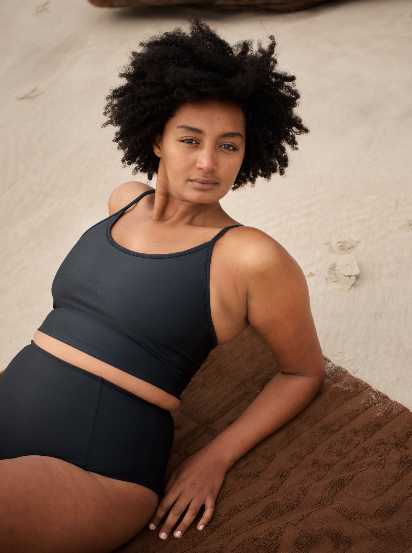 A versatile pullover style top, which features thin straps, a built in shelf bra and a flattering scoop neck. Looks good in and out of the water.