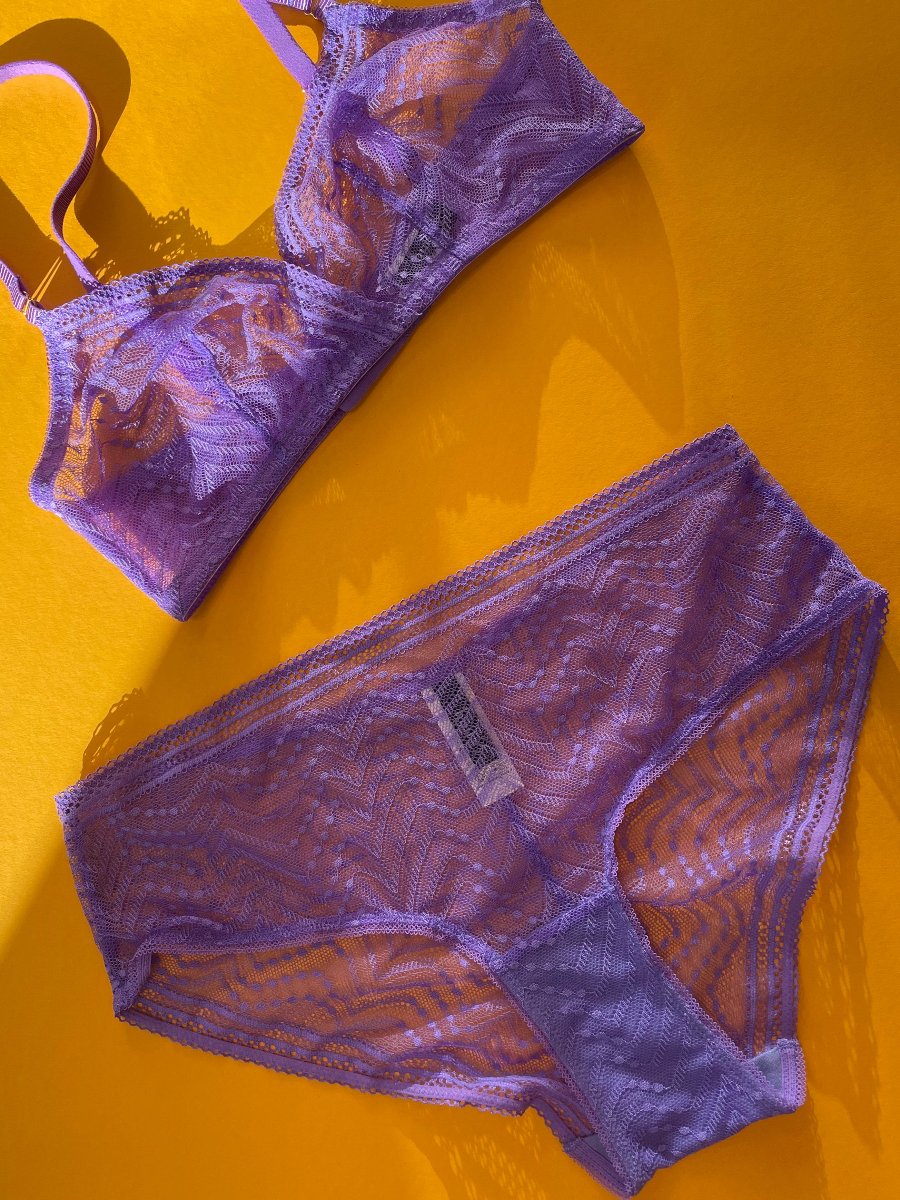 Soft, comfy, mid-rise panty in a stretch lace fabric. Hugs your waist and bottoms, providing a snug and flattering fit. Fun graphic pattern for a little bit of whimsy in your everyday dressing.