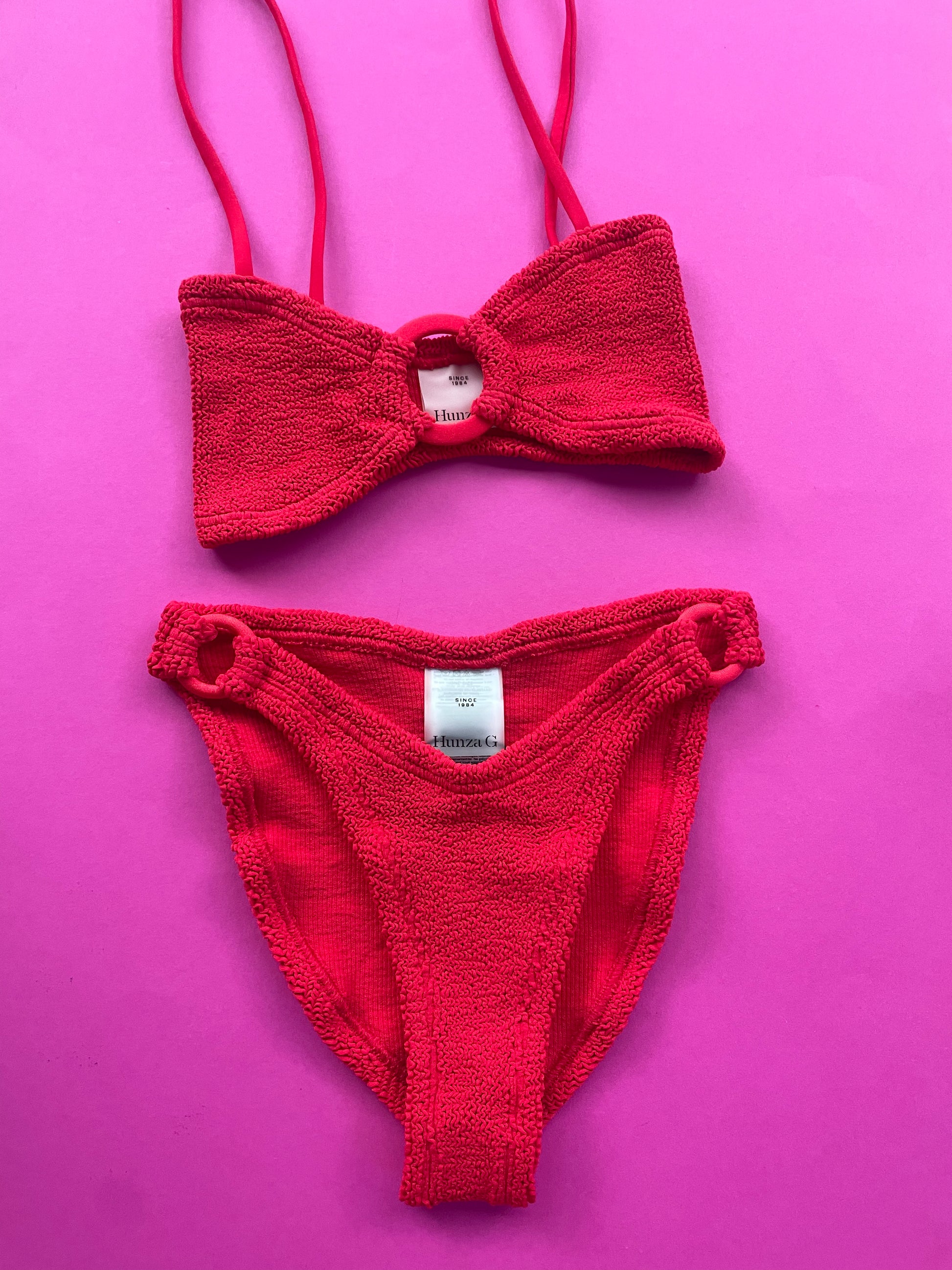 Hunza G: Misty Fabric Covered Hoops Bikini Set - Red