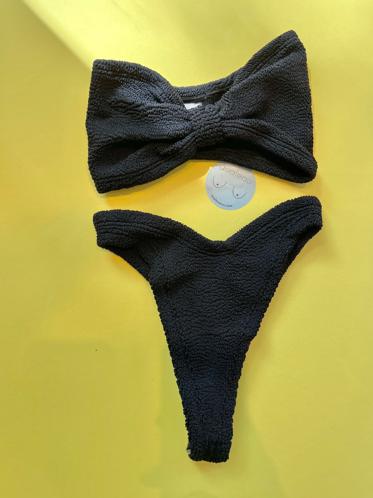 This strapless top stays put on all bust sizes. The cheeky Brazilian bottom - a first for the brand - has a ruched detailing at the back for the perfect fit.