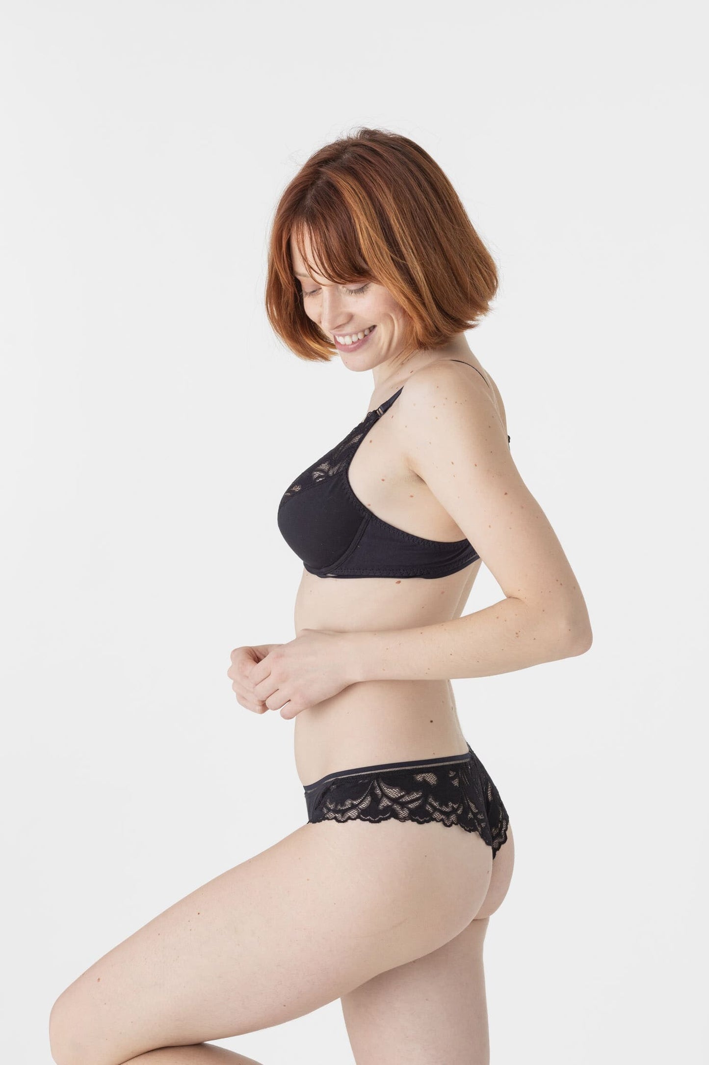 An underwire cotton bra for optimal comfort and fuller coverage for extra support. The upper part of the cup is made of stretched lace while the lower part is lined in cotton.