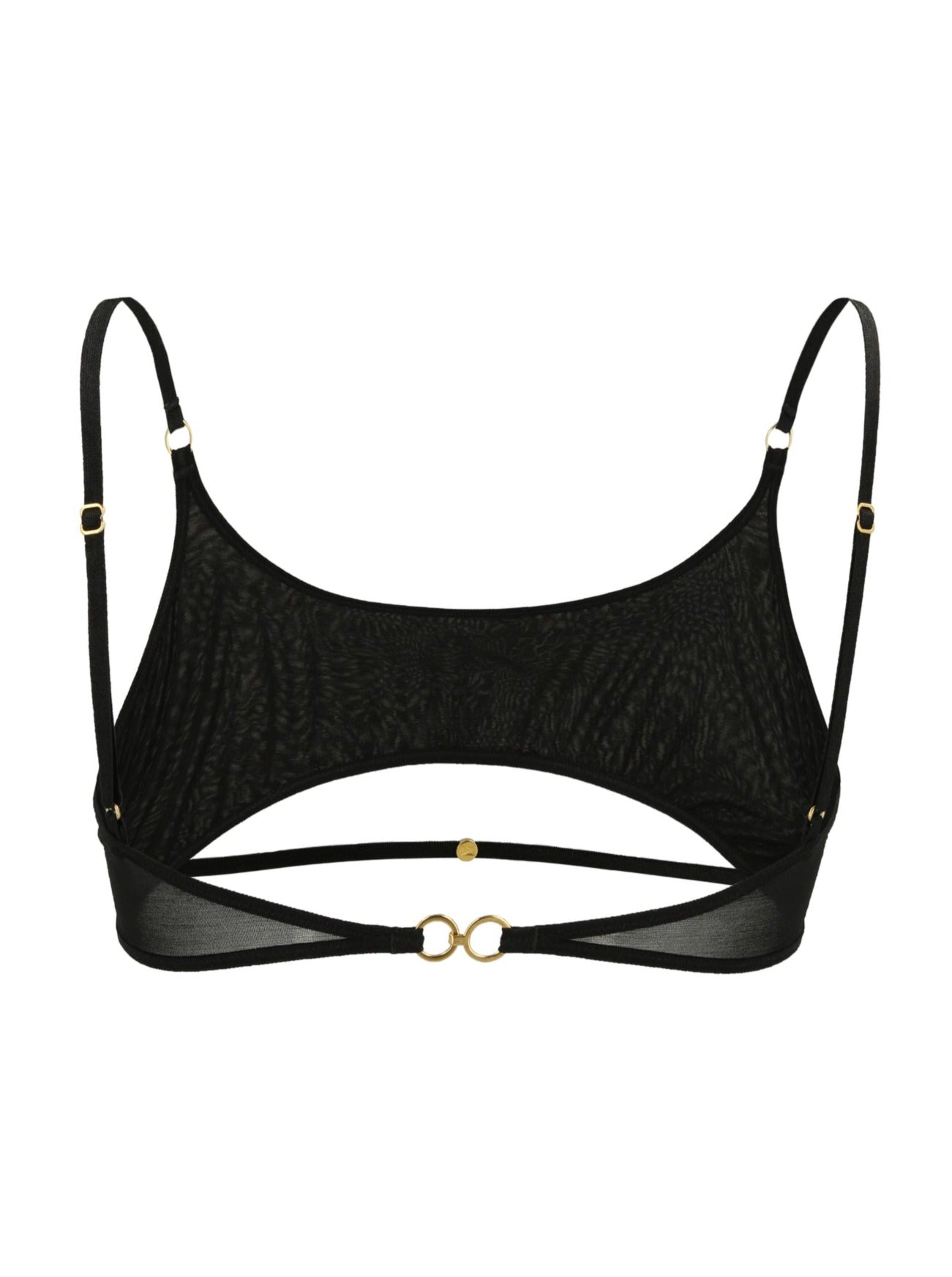 The underboob gets a starring role in this bandeau bra. Features an underbust cut-out frame with delicate elastic. Made of a Japanese ultra-soft knit fabric that feels heavenly on the skin. Fastens on the back with gold fastener hardware.