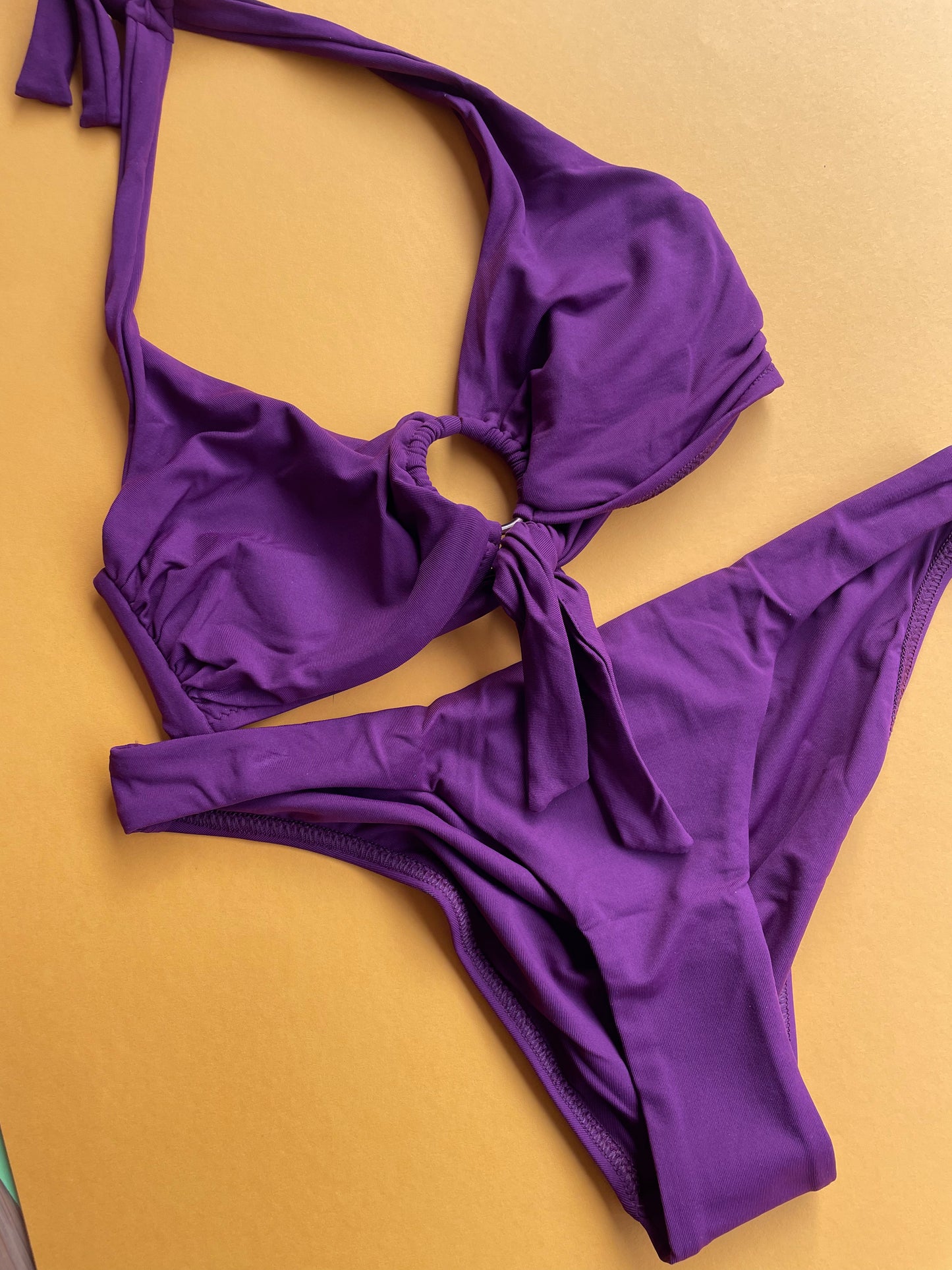 Hipster cut, low-rise bikini bottoms in a rich bordeaux color.