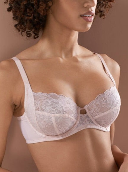 This lacy 4-part bra is engineered to support without sacrificing comfort. The bottom of the cups are lined with rigid tulle for extra support. This comes through 42H!