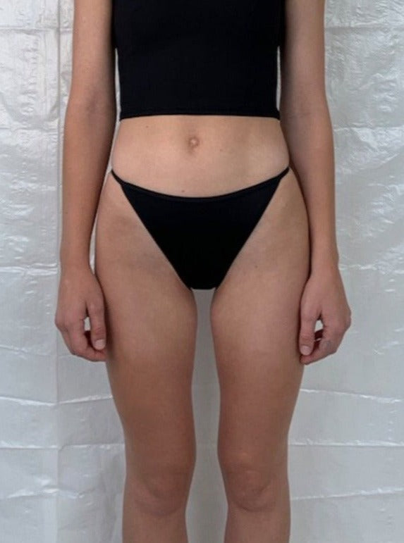 A classic and flattering string bottom, meant to sit anywhere on the hips you prefer. Finished with zig-zag stitching.