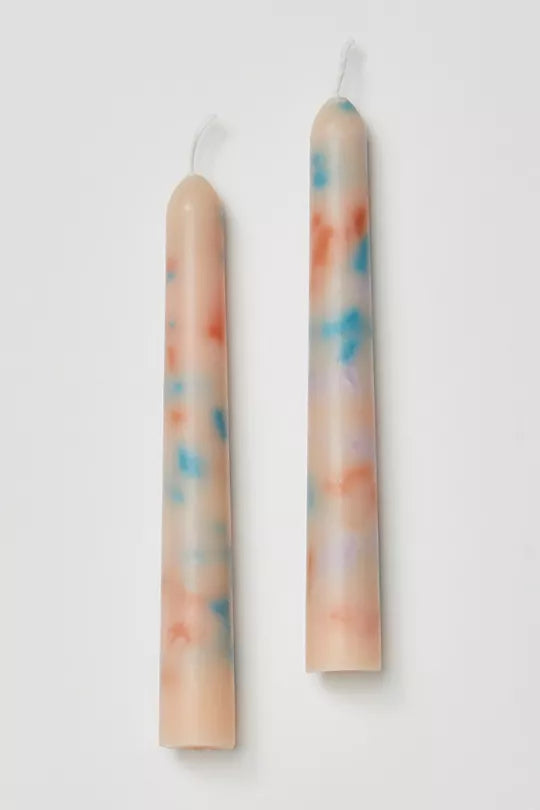 Pastel peach taper candles. Dosed with pops of color as you melt it down.