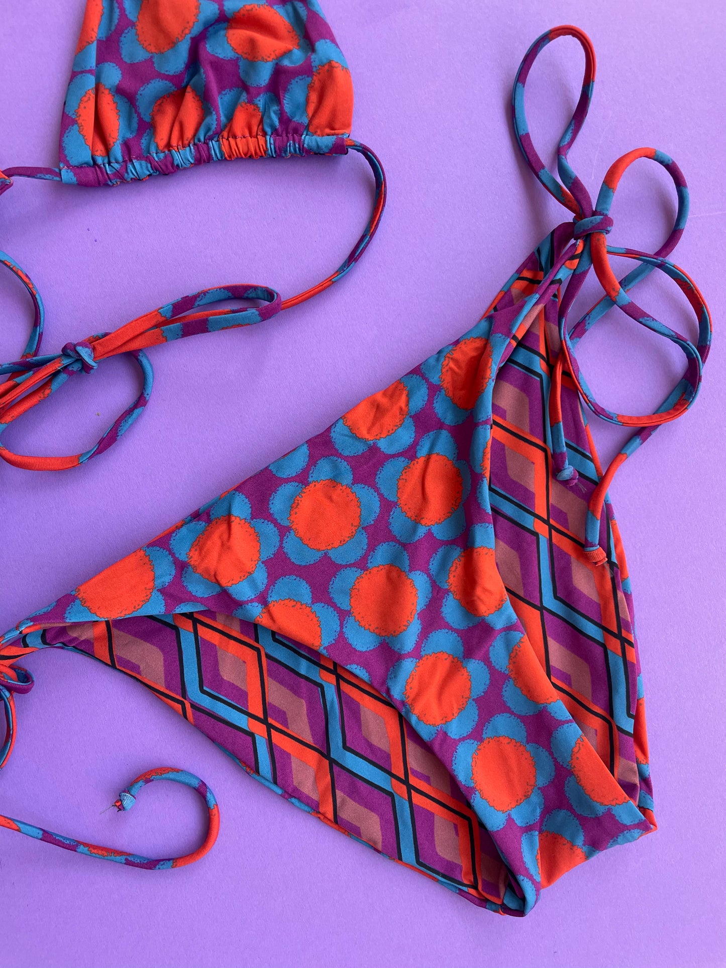 Our best-selling triangle bikini suit every year: the teensy adjustable bikini comes in unique and vibrant prints.