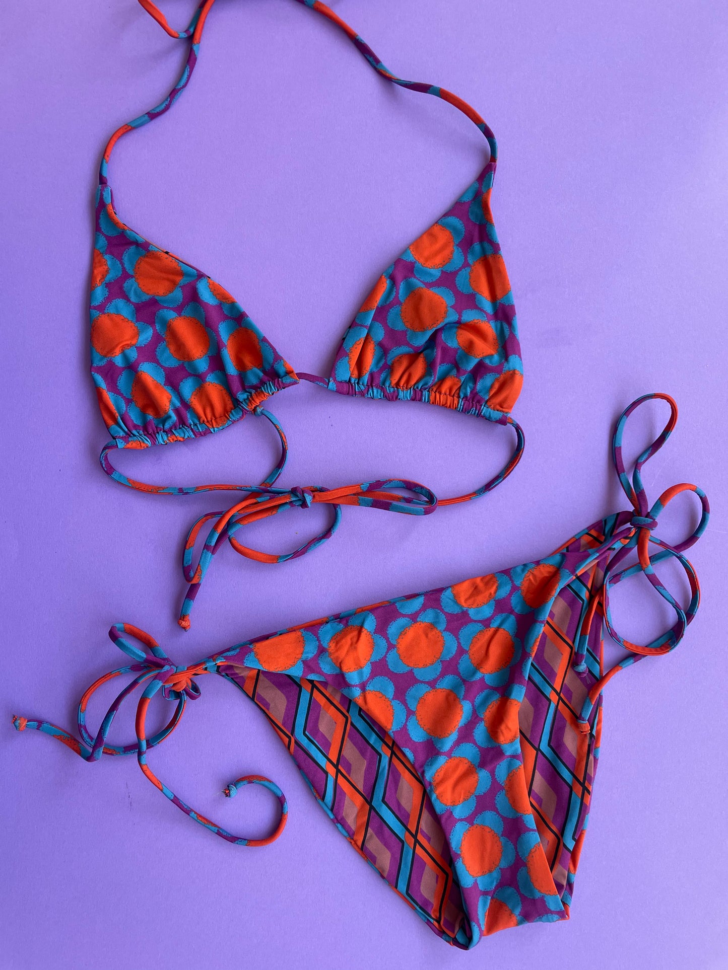 Our best-selling triangle bikini suit every year: the teensy adjustable bikini comes in unique and vibrant prints.