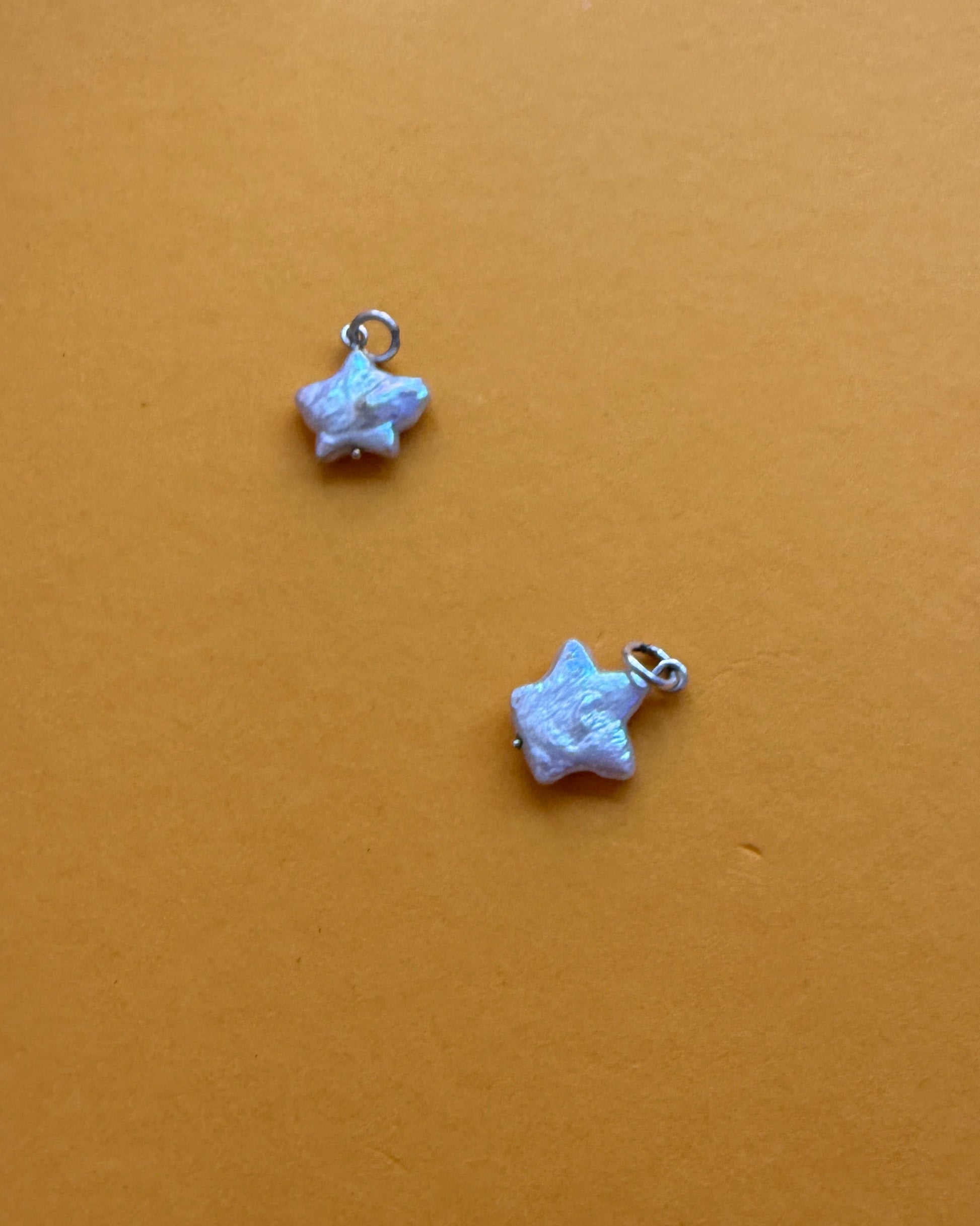 One of a kind, organically formed fresh water pearl charms in star shapes. Comes on Sterling silver ring.