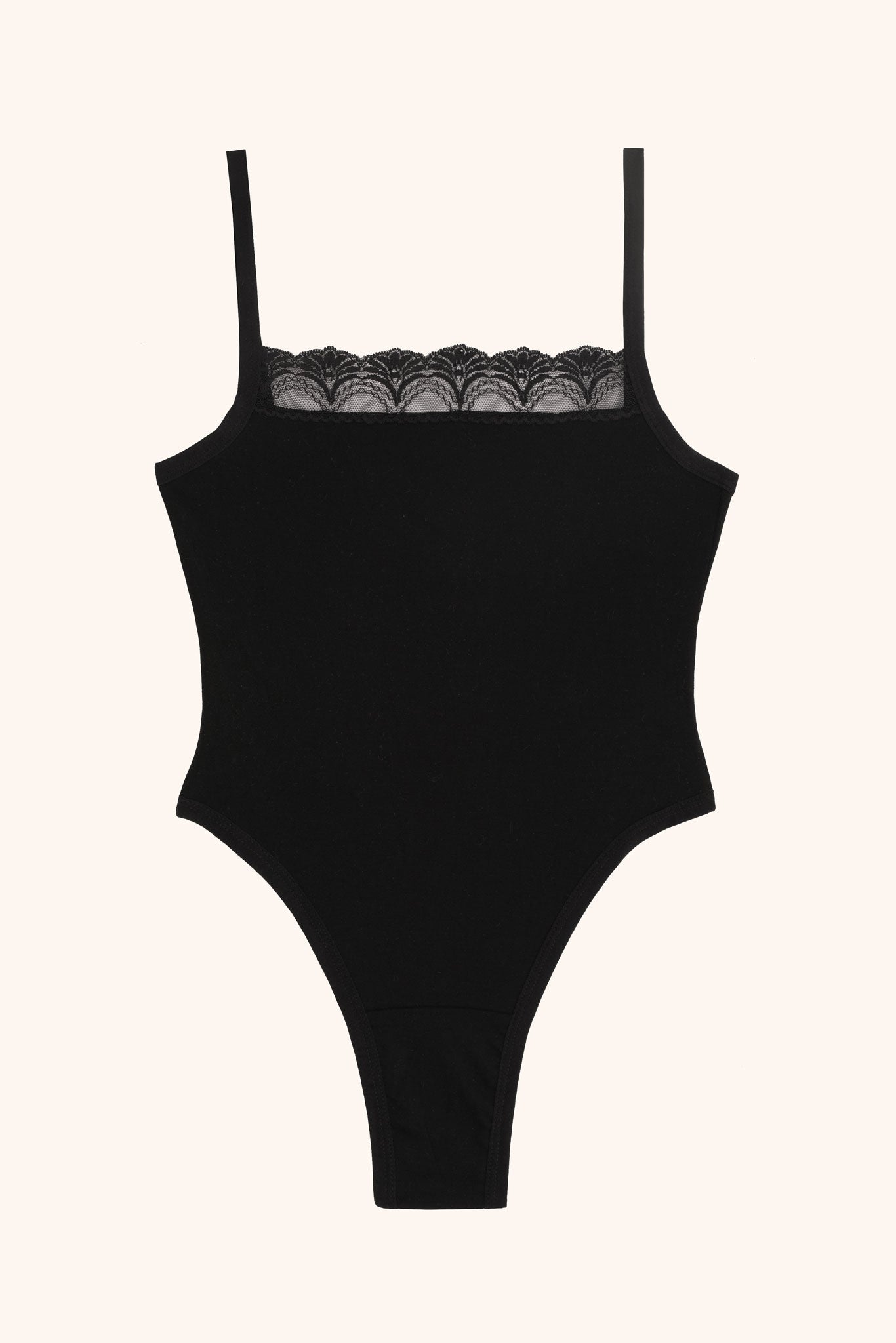 Inspired by ballerinas, the Primadonna bodysuit is crafted from a soft and breathable modal fabric and graphic lace neckline. Low scoop back.