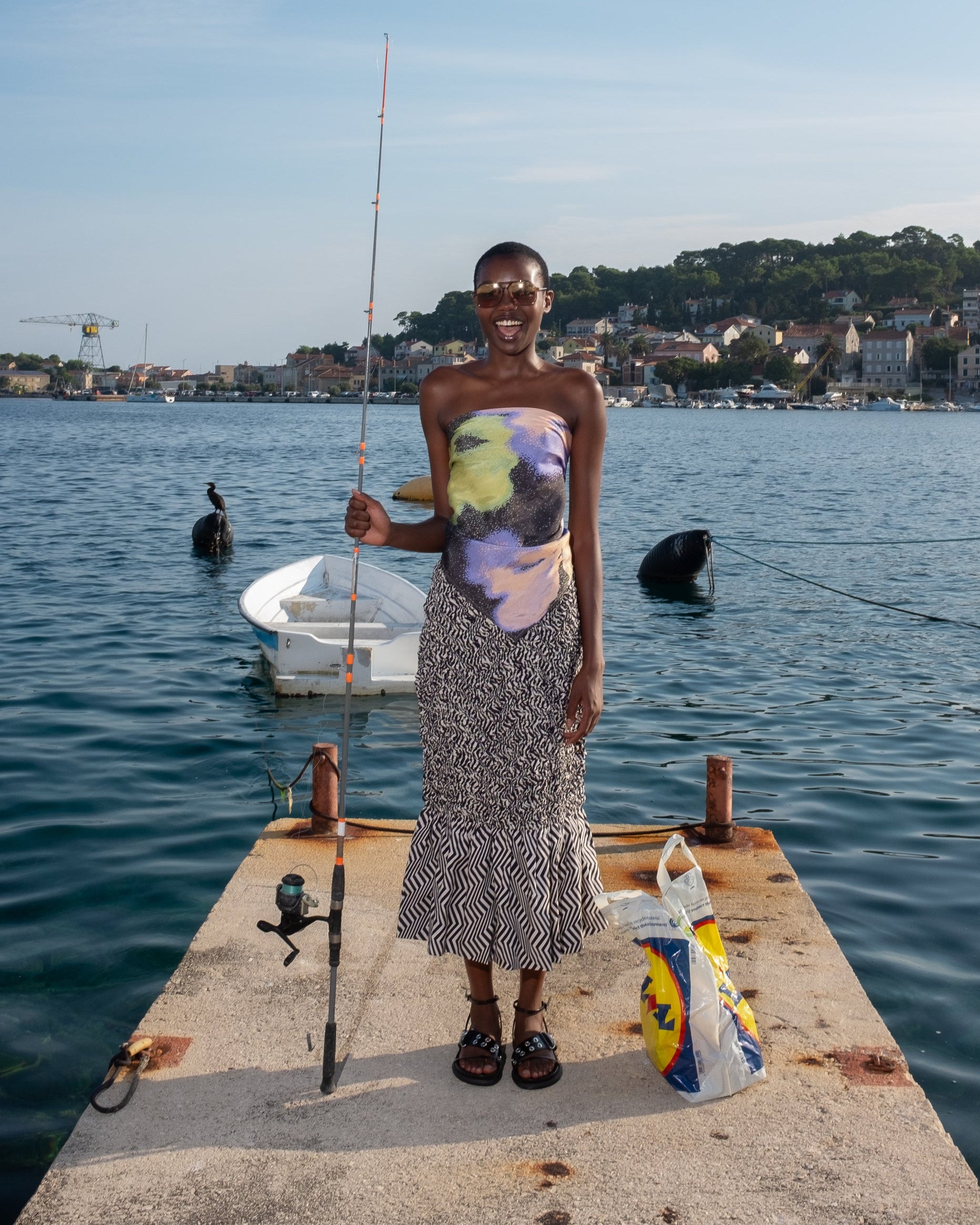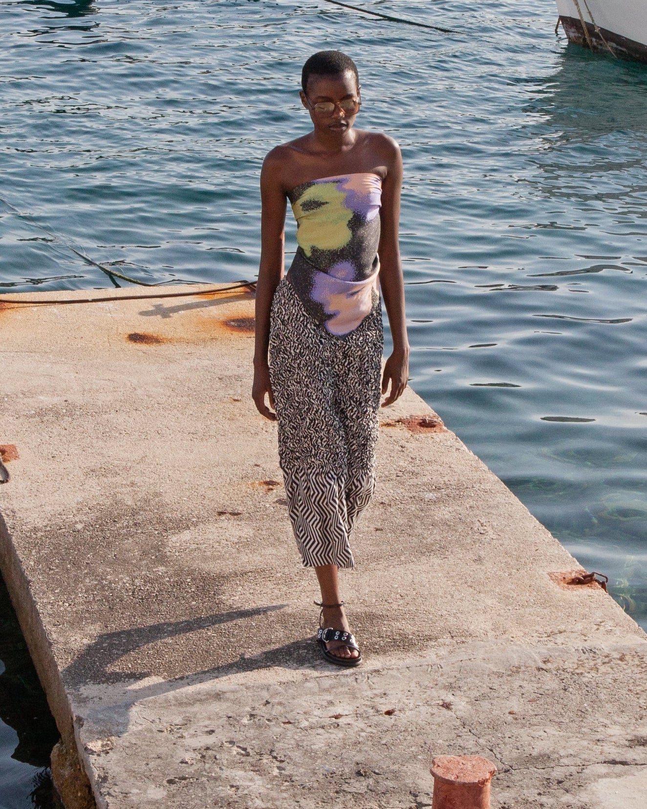 Handkerchief tube top crafted from a silky TENCEL™.  Featuring UIM custom hand painted abstract artwork Iridaea, the Poma top ties in the back for an adjustable fit with side pleats at bust that flatter the bust. This product was created using Certified Sustainable Materials.