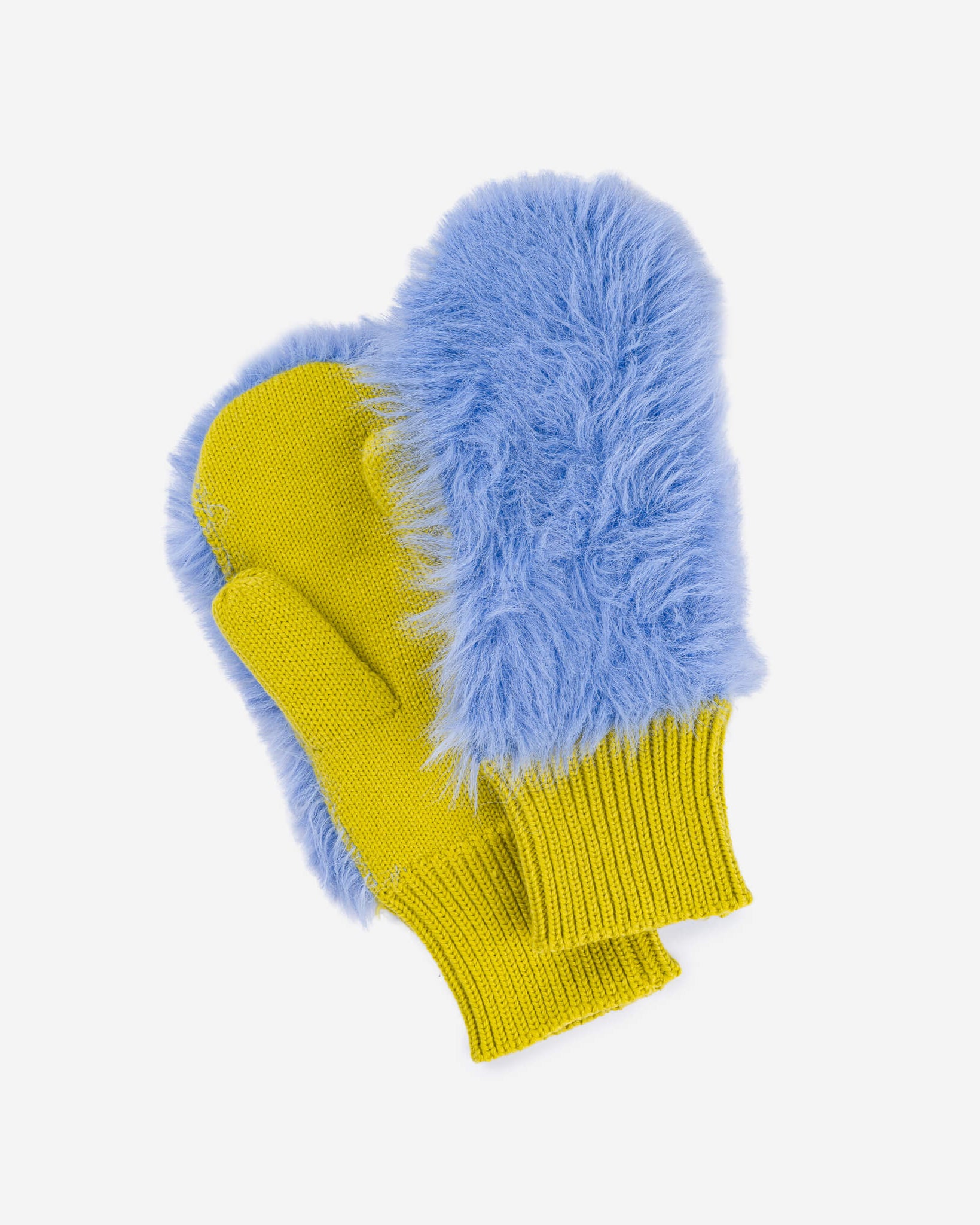 Verloop: Faux Fur Knit Mittens - Periwinkle/Golden