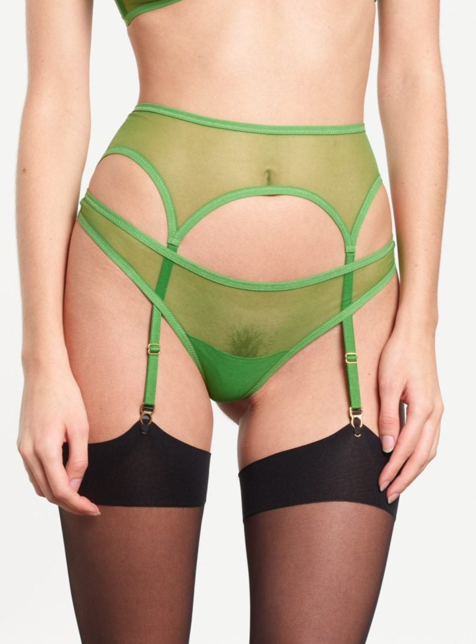 Stretch sheer tulle garter belt that is simple yet provocative.